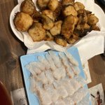 鍋、唐揚げ、カルパッチョ、あらい、昆布締めといったところかな