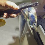半身におろしてピチッとシートに包んでラップして厚手のビニールに入れて、氷水で保管してたサゴシ♪ 半分に渡してたから切り口の血合いは酸化して黒くなってたけど、切ってみると綺麗な赤なので、まだまだ全然生で使えそうです☺️ 適度に水… https://twitter.com/i/web/status/1582335647045816322
