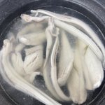 鱧、湯引、焼霜で食べてみたが、、ヒレの処理がイマイチでなんだかなな感じ