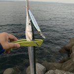 武庫川一文字12時間耐久釣行は運良く夕方にヒットしたサゴシで坊主逃れ🥲 ルアーには全く当たりすらないのに隣の飲ませはメジロクラス釣れまくってるの見てなんかアホらしくなった… そんな中釣り友が唯一朝にルアーでブリ釣った!羨まし過… https://twitter.com/i/web/status/1589935289744908288