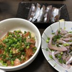 イワシの刺身 高根ニジのポキ タチウオのネギポン酢 https://twitter.com/jjwtpgnwxt/status/1594660525962846209/photo/1