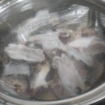 もうヤケクソで、W杯実況を聴きながら寒チヌ飯やる。もちろんチヌのあら出汁を使って炊く。臭み取りで焼きを入れたカブトとカマを水に沈めていたら、火もつけてないのに脂が浮かんできた。すげぇ!