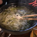 仕上げに、ごま油とオリーブ油の熱々を長ネギにかけて出来上り