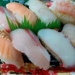 本日のお寿司は、 ブリ、炙りサーモン、ヒラメ、なんばんえび、タコの8貫入り680円(税込734.4円)です。 お寿司はお刺身コーナーの隣に並んでいます。 どうぞお召し上がりください。 https://twitter.com/ffkatou7219/status/1595242630719631360/photo/1