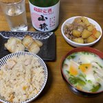 サゴシの西京焼き、肉じゃが、鶏とキノコの炊き込みご飯、白味噌汁 https://twitter.com/tuna_wk2/status/1595384203767468032/photo/1