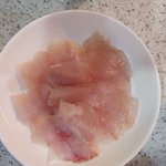 ヤズ(ブリの子供)とマゴチは刺身にしました。いただきます( ՞ . .՞)"