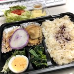 昨日のアコウの残りとワカメでお吸い物 鶏胸肉のカオマンガイ風 酢キャベツ 人参カレーサラダ 小松菜としめじのナムル おからのナポリタン 旦那は