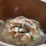鳥胸入り炊き込み玄米、味付け卵、田村屋の味噌漬け、行者にんにく割千漬け、ヒラメの塩焼き