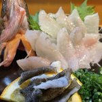 ヒラメの刺身(エンガワ、皮、肝付)
